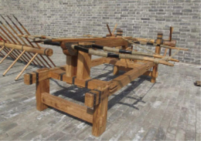 弩大致可分为臂、弓、机三个部分。弩上的弓是横放的,发射时,先张开弦,将其挂在弩机的桩子上,将箭矢装于弩臂上的箭槽内;然后,扳动机关让桩子下缩,弦随即脱落,利用张开的弓弦急速回弹形成的动能,高速将箭射出。尤其值得注意的是,古代的弩上还有一个特别的装置名叫“望山”。所谓“望山”,类似于我们现在枪上的准星。到西汉之后,“望山”上还出现了刻度,供射手按目标距离调整发射的角度,以提高射击的命中率。