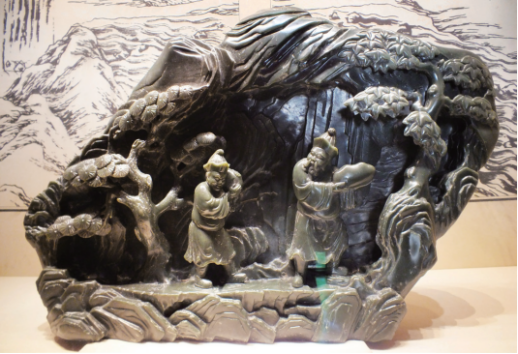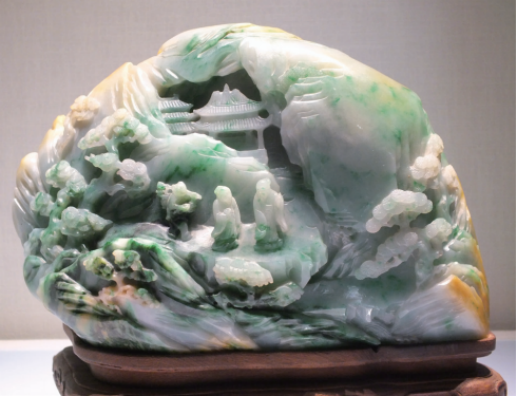 所谓山子,其实是一种常见的石雕摆件,大多陈设在书房或卧室,因为它表现的主要是山水田园风光,仿佛一座微缩假山,故而得名。山子有大有小,大的甚至可重达数吨,山子所用石料种类繁多,如钟乳石、太湖石、灵璧石、汉白玉等;小的则可以手持把玩,一般为名贵玉石,如和田玉、翡翠、青金石等,其中以和田玉为首选。