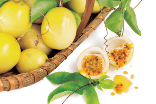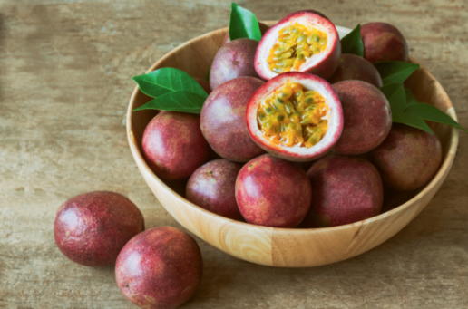 不仅如此,这种芳香的水果还具有很高的营养价值,经测定,紫果百香果中含有人体必需的天冬氨酸、苏氨酸、丝氨酸、谷氨酸等17种氨基酸。世界上不少国家都把百香果的果汁作为登山运动员、海员等特殊人群的天然绿色保健饮料。此外,百香果中富含维生素、矿物质以及膳食纤维等营养素,含有黄酮类化合物、多糖、生物碱、类胡萝卜素等生物活性物质。同时,其提取物具有抗焦虑、抗氧化、消炎、抗菌、降血压等生理功能,对减轻患者膝关节炎、糖尿病有一定的辅助治疗作用。因此,百香果是颇负盛名的草药,有生津止渴、提神醒脑、消除疲劳、帮助消化等功效。