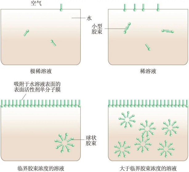 表面活性剂分子在不同浓度中的状态