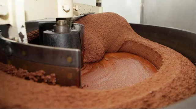 当然在现代工厂就是将可可豆放入研磨机里,研磨机把碎豆研磨成精细的粉末,所含有的可可脂随着研磨也慢慢释放出来,形成浓稠的可可浆。